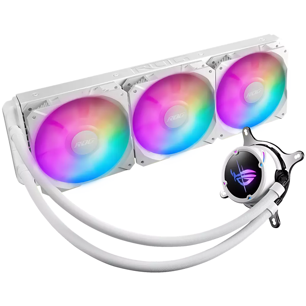 The ROG Strix LC II ARGB White Edition series makes use of the most recent cooling-plate design. The plate, which is constructed of pure copper and includes several small micro-channels, reduces thermal resistance and increases surface area, lowering CPU temperatures.
