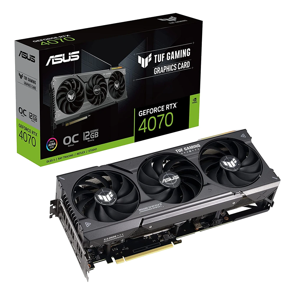 The ASUS GeForce RTX 4070 TUF Gaming OC graphics card, based on the Ada Lovelace architecture and designed for the graphics demands of 4K and 1440p games at high frame rates, brings the power of real-time ray tracing and AI to gaming for PC . The graphics card is equipped with 12 GB GDDR6X VRAM and a 192-bit memory interface, offering better performance and energy efficiency than the previous generation of Ampere processors.