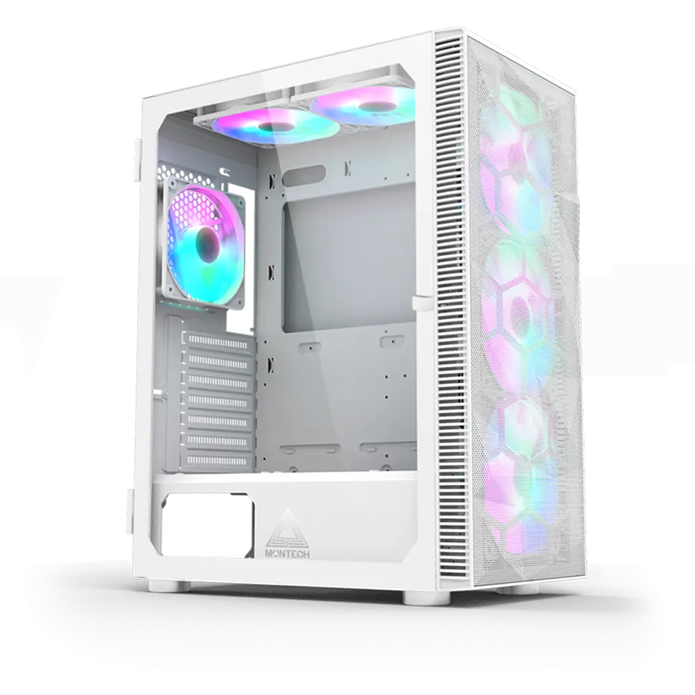 Immerse yourself in a gallery of stunning images showcasing the captivating aesthetics and design of the Montech X3 Mesh RGB White Mid-Tower Gaming Case.