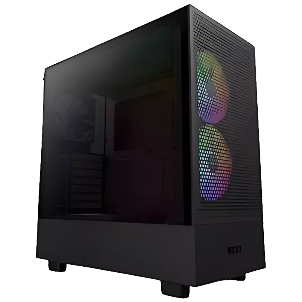 Explore the sleek design and vibrant RGB lighting of the NZXT H5 Flow in our gallery, showcasing its SGCC steel construction and ultra-clear tempered glass panels.