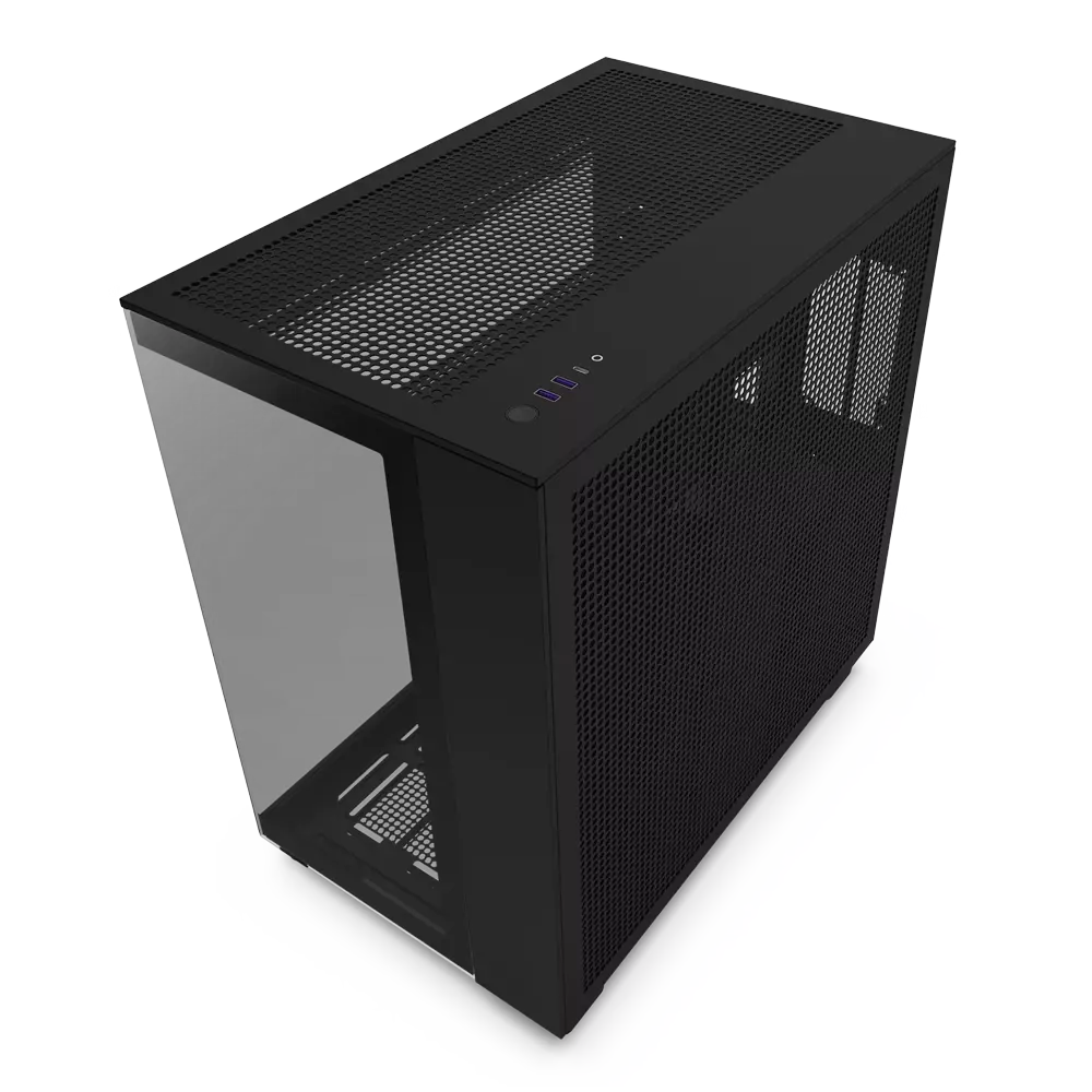 The NZXT H9 Flow Edition Black ATX Mid Tower Case in Bahrain offers key features such as room for up to ten fans or three 360mm radiators, a dual-chamber design, and a unique wraparound glass panel for a premium showcase.