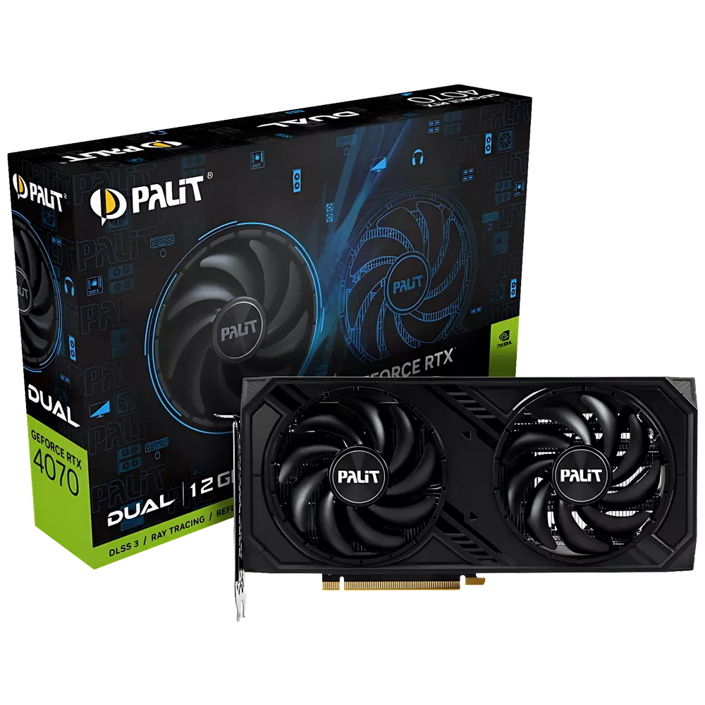 Explore the technical specifications and capabilities of the Palit RTX 4070 Dual 12GB Graphics Card.